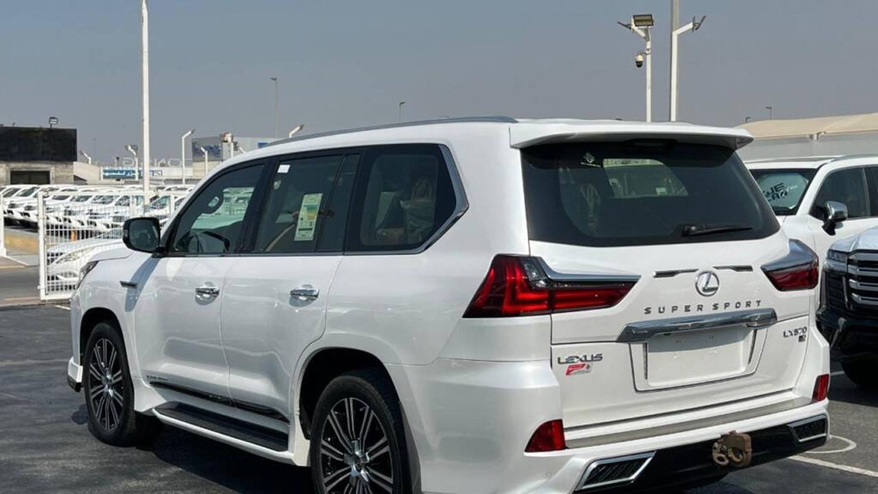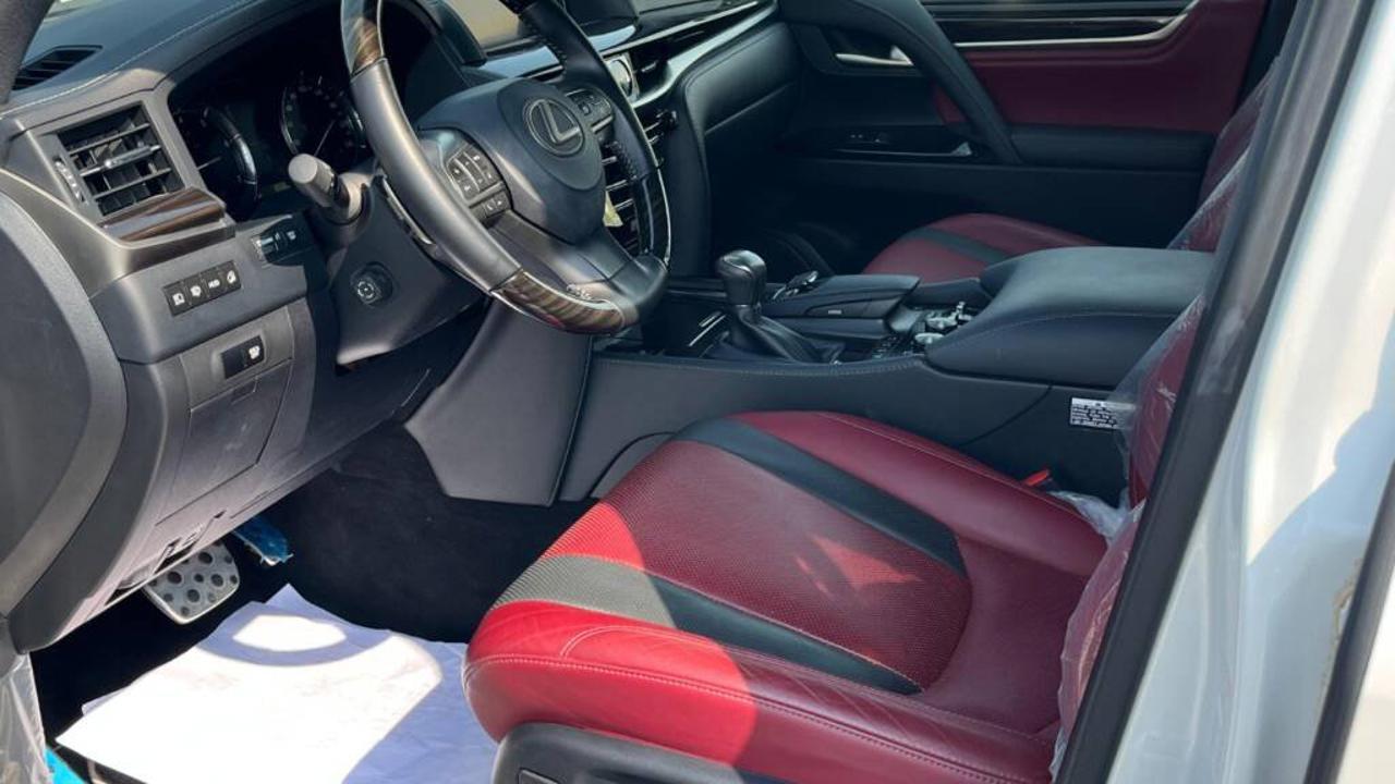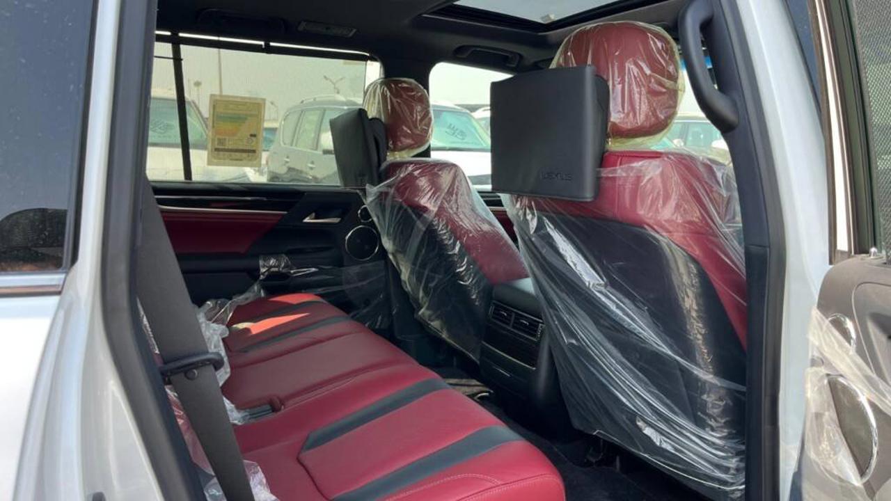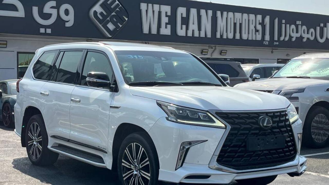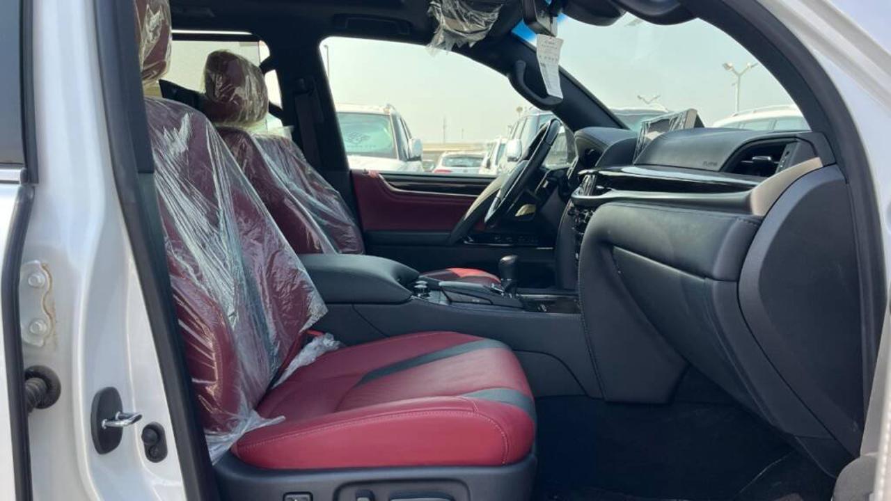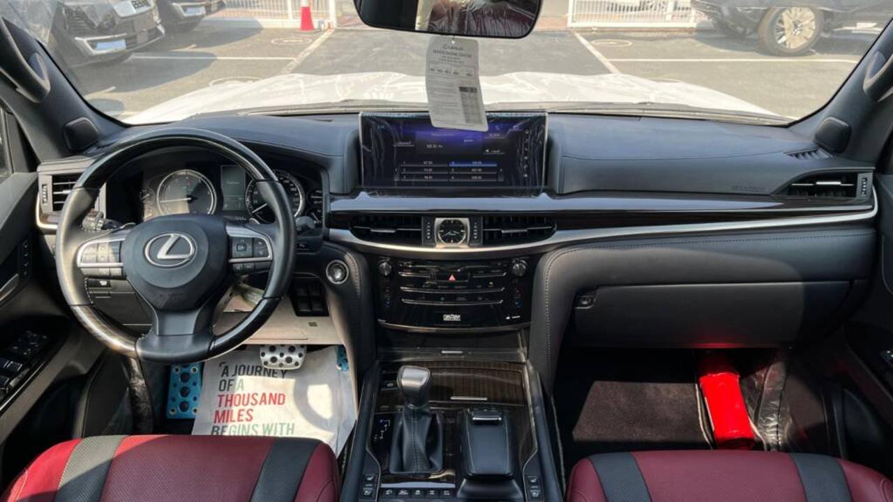 Lexus LX 570 Signature 5.7L V8 2021 is powered by a 5.7-liter V8 engine producing 383 horsepower at 5600 rpm and 403 lb-ft (547 Nm) of torque. It comes with an 8-speed automatic transmission and a full-time 4WD system that delivers strong performance on and off road. The fuel tank capacity is approximately 138 liters. The vehicle measures about 5065 mm in length, 1980 mm in width, and 1910 mm in height, with a wheelbase of 2850 mm, providing seating for up to eight passengers. The LX 570 Signature can tow up to 7000 lbs (3175 kg). Fuel economy averages around 12 mpg in the city and 16 mpg on the highway, or about 6.4 km/L in the GCC region. The Signature edition includes exclusive exterior and interior styling details such as unique front grille design, premium leather upholstery, and upgraded trim finishes. Standard equipment includes adaptive suspension, ventilated seats, multi-zone automatic air conditioning, premium Mark Levinson audio, navigation system, rear entertainment screens, and advanced safety features like vehicle stability control, multi-terrain select, hill-start assist, and multiple airbags.
