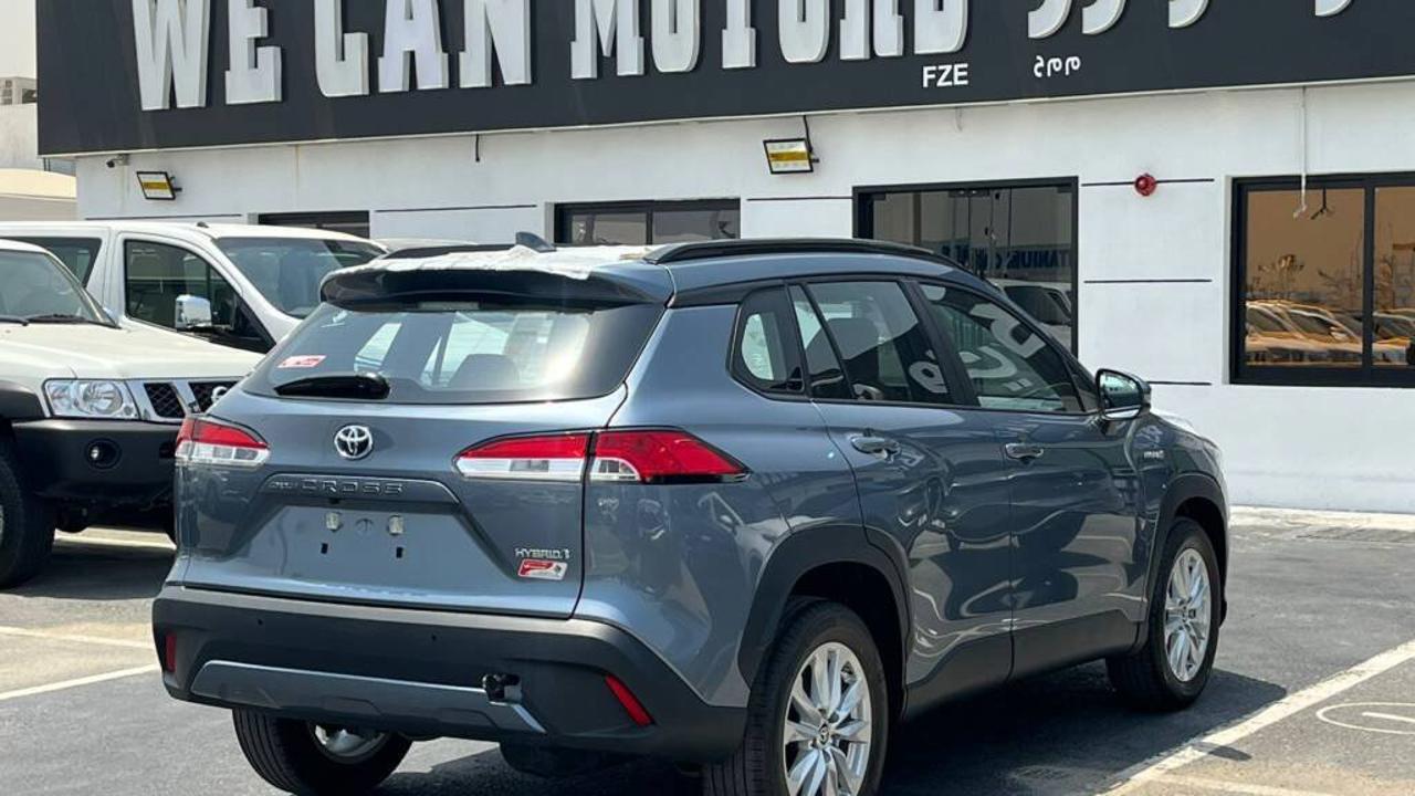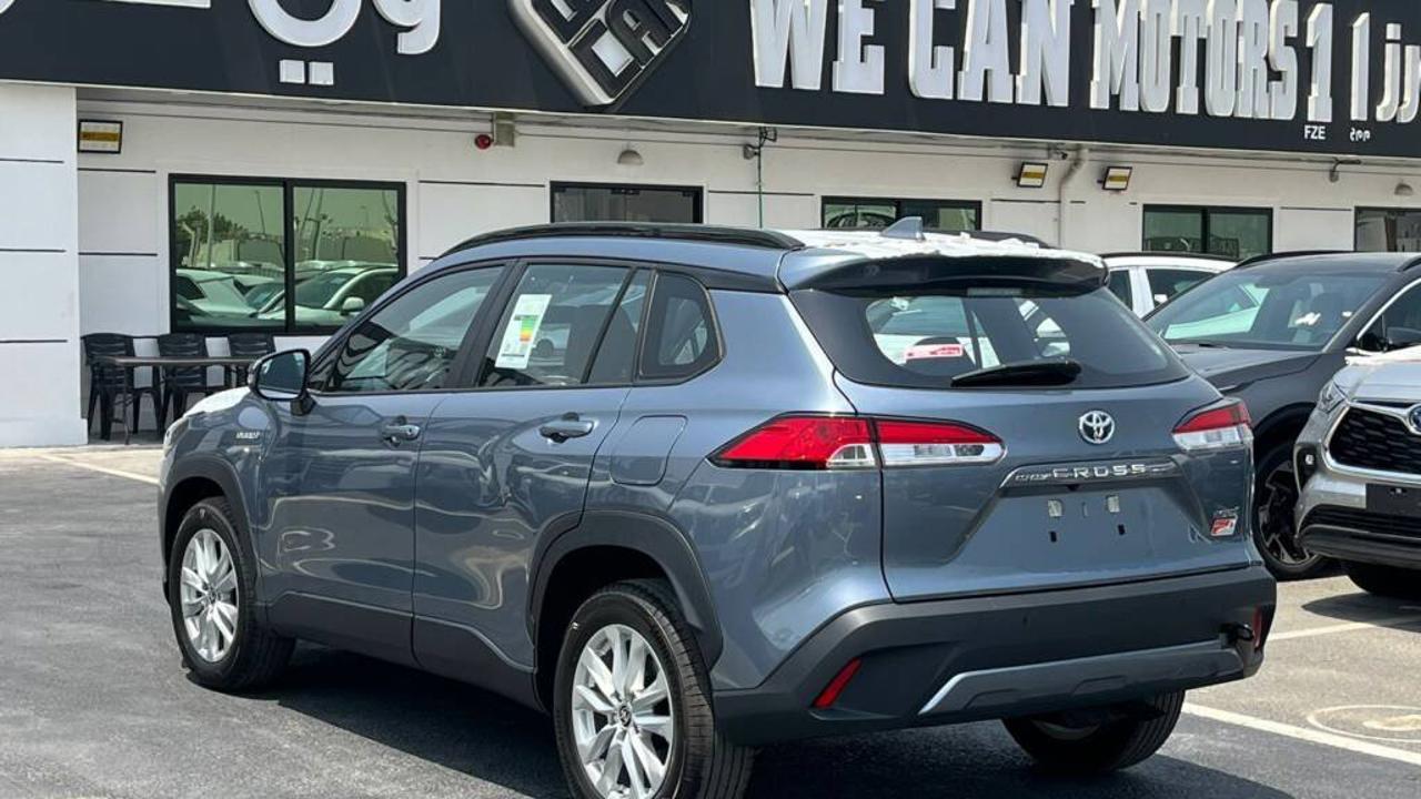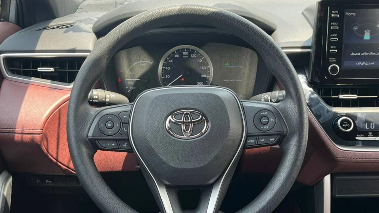 TOYOTA COROLLA CROSS 1.8L Hybrid XLE comes with a 1.8L HEV 4-Cylinder engine delivering a combined 121 HP and 142 Nm torque at 3600 RPM from the engine, plus 163 Nm from the electric motor. It features a Continuous Variable Transmission (CVT), Front Wheel Drive, and a fuel tank capacity of 36L with fuel consumption of 23.7 Km/L. Dimensions are 4460 mm length, 1825 mm width, and 1620 mm height, seating 5 passengers including the driver. It includes a Display Audio Multimedia Touch Screen 8 inch, Apple CarPlay System, USB Port, and 6 Speakers. The car also features a Front Passenger Door Lock, Rear A/C Duct, Sun Visors with Illuminated Vanity Mirrors, 17” Alloy Wheels with 215/60R17 tires, Halogen Head Lights, Daytime Running Light (DRL), LED Front Fog Lamps, Smart Entry System for Driver and Front Passenger, Coloured and Powered Outside Rear View Mirrors with TSL, Auto Retractable Power Side Mirrors, Coloured Outside Door Handles, Roof Rails, Rear Spoiler, and Moon Roof. It offers Cruise Control, Drive Mode Select (Eco / Normal / Sport), Front and Rear Parking Sensors, Rear Camera, Airbags for Driver and Front Passenger, Anti-Lock Brake System (ABS), Vehicle Stability Control (VSC), Tire Pressure Warning System (TPWS), Anti-Theft System (Engine Immobilizer), Hill-Start Assist Control (HAC), Tonneau Cover, Floor Mat, and Fuel Sticker 91. Interior features include Engine Push Start Button, Fabric Seat, Driver Seat Vertical Adjuster, Telescopic Steering Wheel, Steering Wheel Controls, 4.2 Inch Multi Information Display, Automatic Power Window for all doors, and Front Automatic Climate Control.