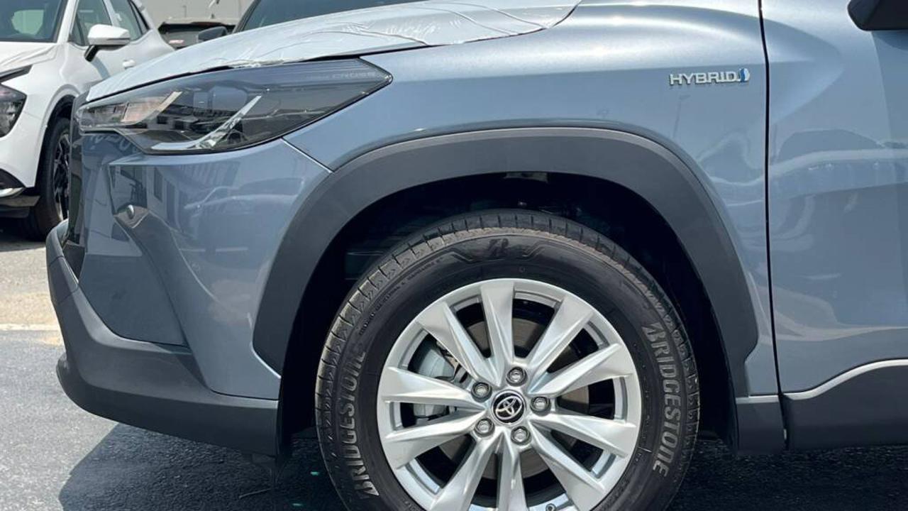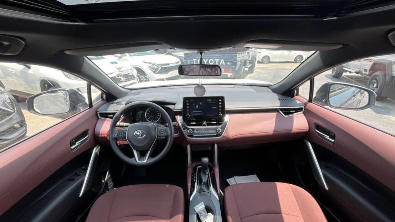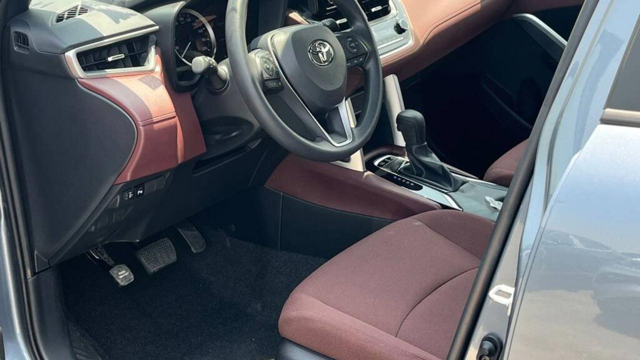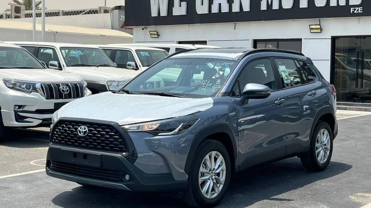 TOYOTA COROLLA CROSS 1.8L Hybrid XLE comes with a 1.8L HEV 4-Cylinder engine delivering a combined 121 HP and 142 Nm torque at 3600 RPM from the engine, plus 163 Nm from the electric motor. It features a Continuous Variable Transmission (CVT), Front Wheel Drive, and a fuel tank capacity of 36L with fuel consumption of 23.7 Km/L. Dimensions are 4460 mm length, 1825 mm width, and 1620 mm height, seating 5 passengers including the driver. It includes a Display Audio Multimedia Touch Screen 8 inch, Apple CarPlay System, USB Port, and 6 Speakers. The car also features a Front Passenger Door Lock, Rear A/C Duct, Sun Visors with Illuminated Vanity Mirrors, 17” Alloy Wheels with 215/60R17 tires, Halogen Head Lights, Daytime Running Light (DRL), LED Front Fog Lamps, Smart Entry System for Driver and Front Passenger, Coloured and Powered Outside Rear View Mirrors with TSL, Auto Retractable Power Side Mirrors, Coloured Outside Door Handles, Roof Rails, Rear Spoiler, and Moon Roof. It offers Cruise Control, Drive Mode Select (Eco / Normal / Sport), Front and Rear Parking Sensors, Rear Camera, Airbags for Driver and Front Passenger, Anti-Lock Brake System (ABS), Vehicle Stability Control (VSC), Tire Pressure Warning System (TPWS), Anti-Theft System (Engine Immobilizer), Hill-Start Assist Control (HAC), Tonneau Cover, Floor Mat, and Fuel Sticker 91. Interior features include Engine Push Start Button, Fabric Seat, Driver Seat Vertical Adjuster, Telescopic Steering Wheel, Steering Wheel Controls, 4.2 Inch Multi Information Display, Automatic Power Window for all doors, and Front Automatic Climate Control.