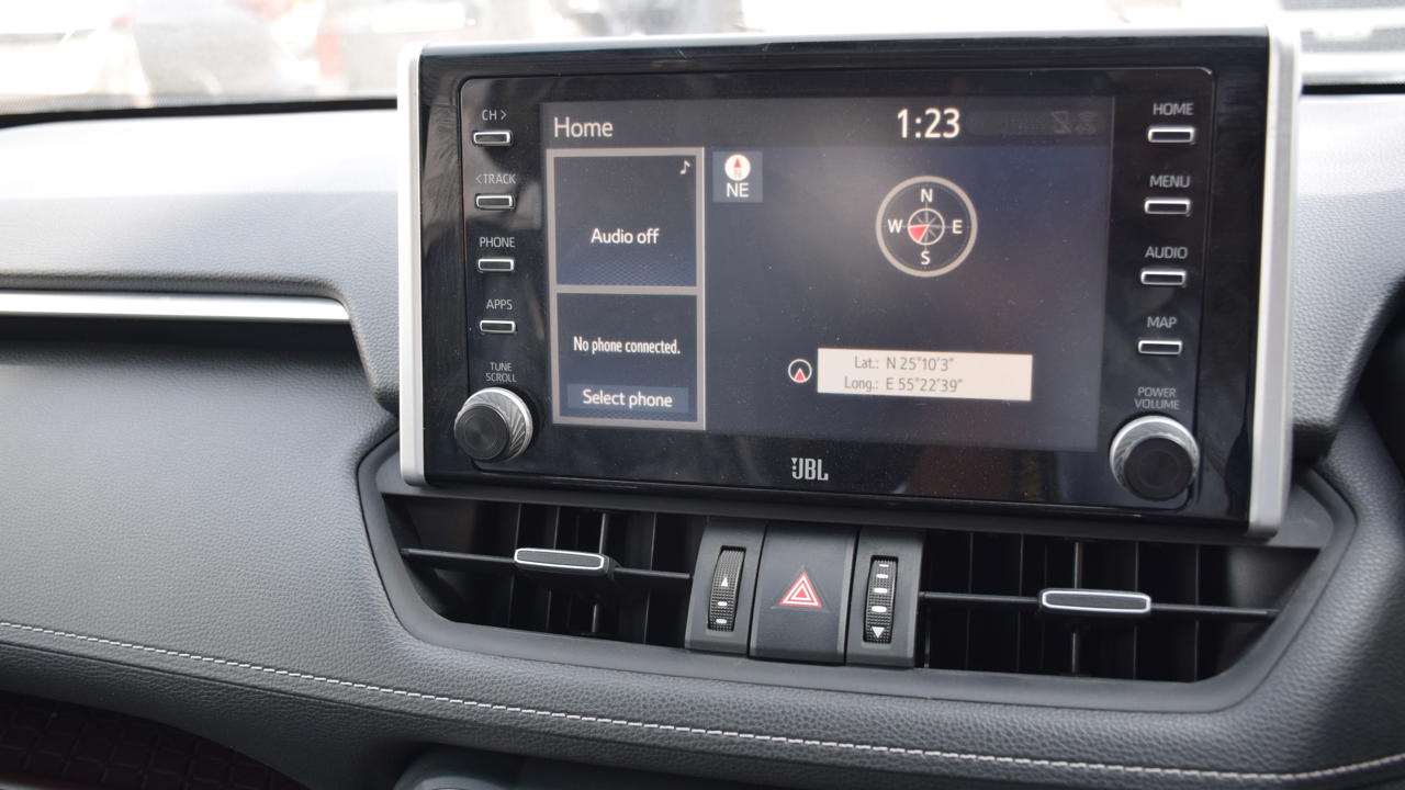 Used Toyota RAV4 Cruiser 2020 Model (2.0L Petrol) full option typically includes premium features like a sunroof, leather seats, heated/cooled front seats, a large infotainment system with Bluetooth/USB, advanced safety (Adaptive Cruise Control, Blind Spot Monitor, 360 Camera), Head-Up Display, power seats, smart entry, LED lights, and dual-zone climate control