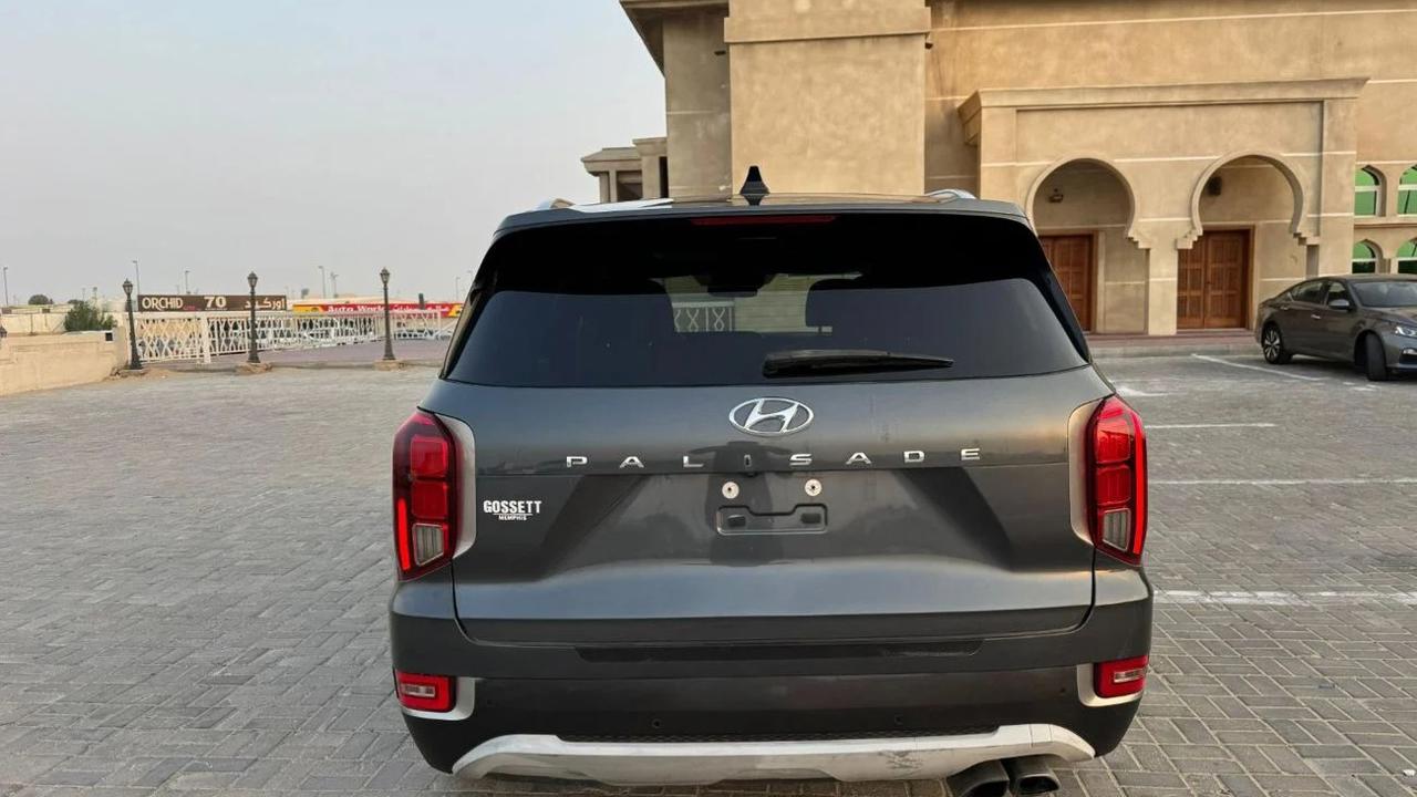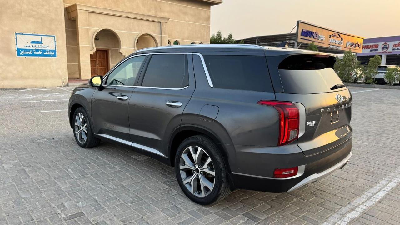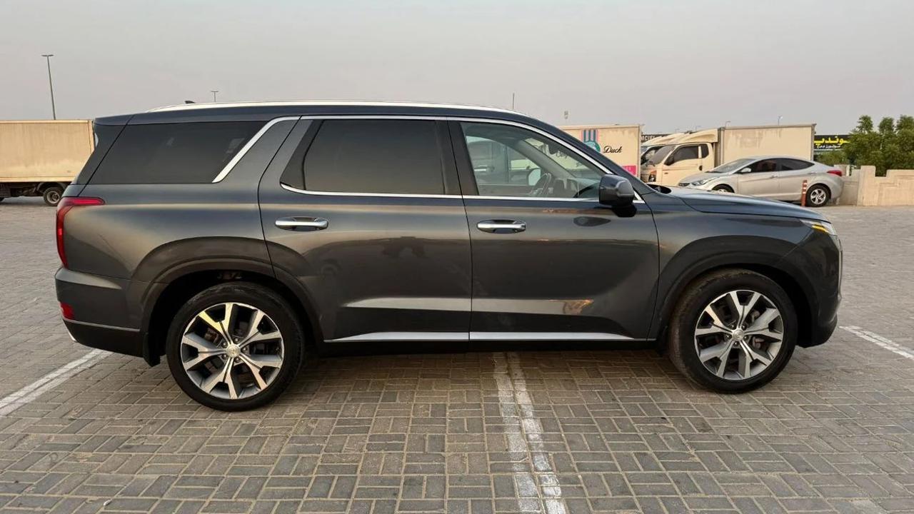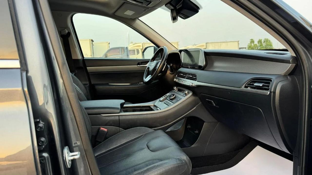 Hyundai Palisade 2020 color grey inside black leather seats sunroof alloy rims auto truck 7 seats side indicators led headlights fog bsm rader rear camera multimedia stering push start LDA parking sensor price 63000 dhs call or whatsapp +971551453408
