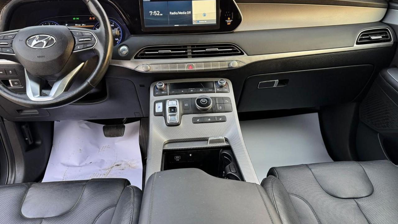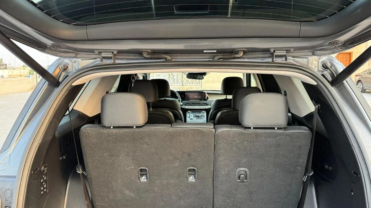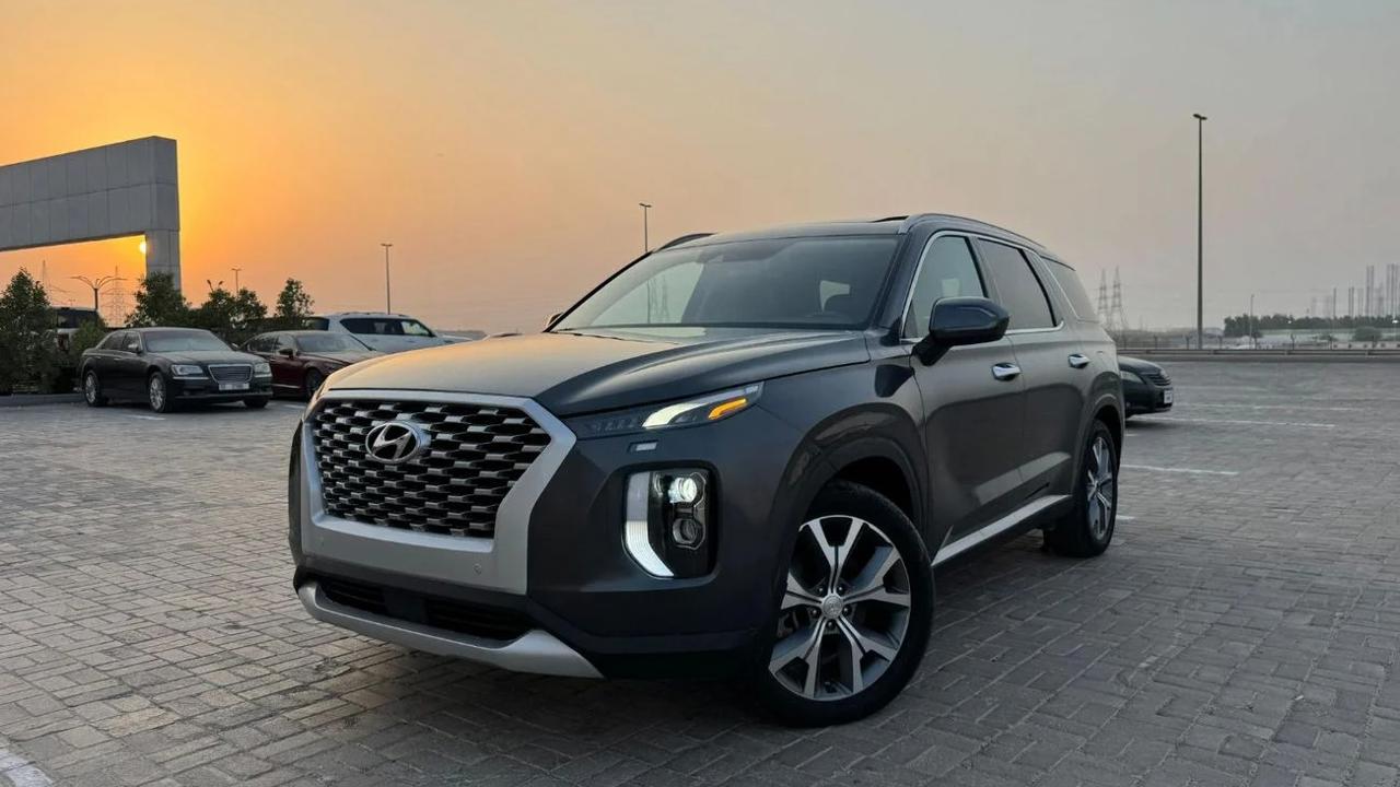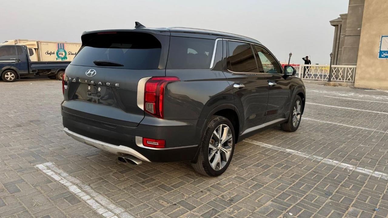 Hyundai Palisade 2020 color grey inside black leather seats sunroof alloy rims auto truck 7 seats side indicators led headlights fog bsm rader rear camera multimedia stering push start LDA parking sensor price 63000 dhs call or whatsapp +971551453408