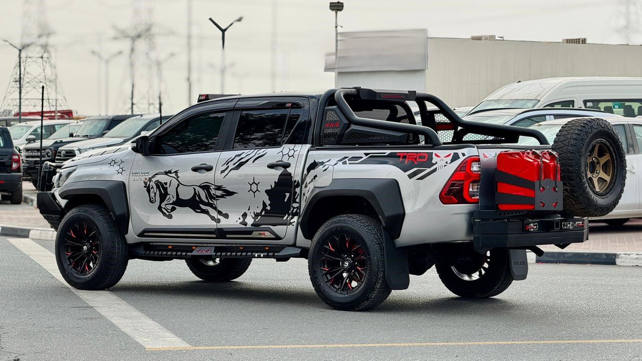 Double Cabin - Heavy Bull Bar With Focused Led Lights - Dual Bull Bar Antenna - Premium Leather Seats - Steering Control Switches - Cruise Control - Traction Control - Downhill Assist - Multimedia Screen - Power Windows - Tinted Windows - Digital Odometer - Back Mounted Fuel Canes - Back Tire With Swing Carrier - 4x4 Heavy Roll Bar - 4x4 Side Steps With Led Lights - Gr Roof Mounted Led Lights - Alloy Rims - Fog Lights - Sun Visors