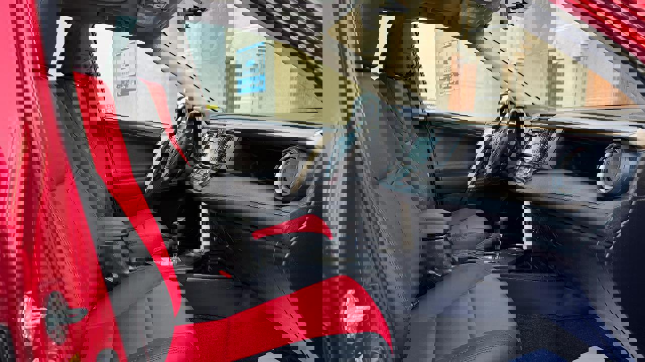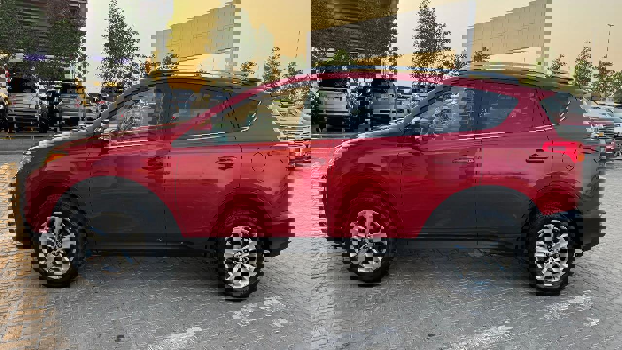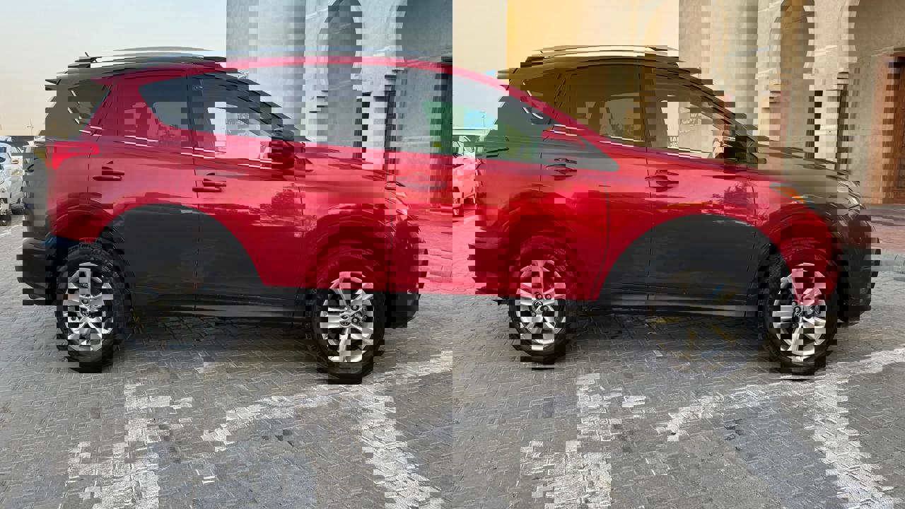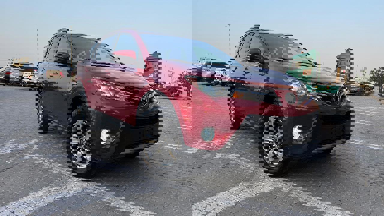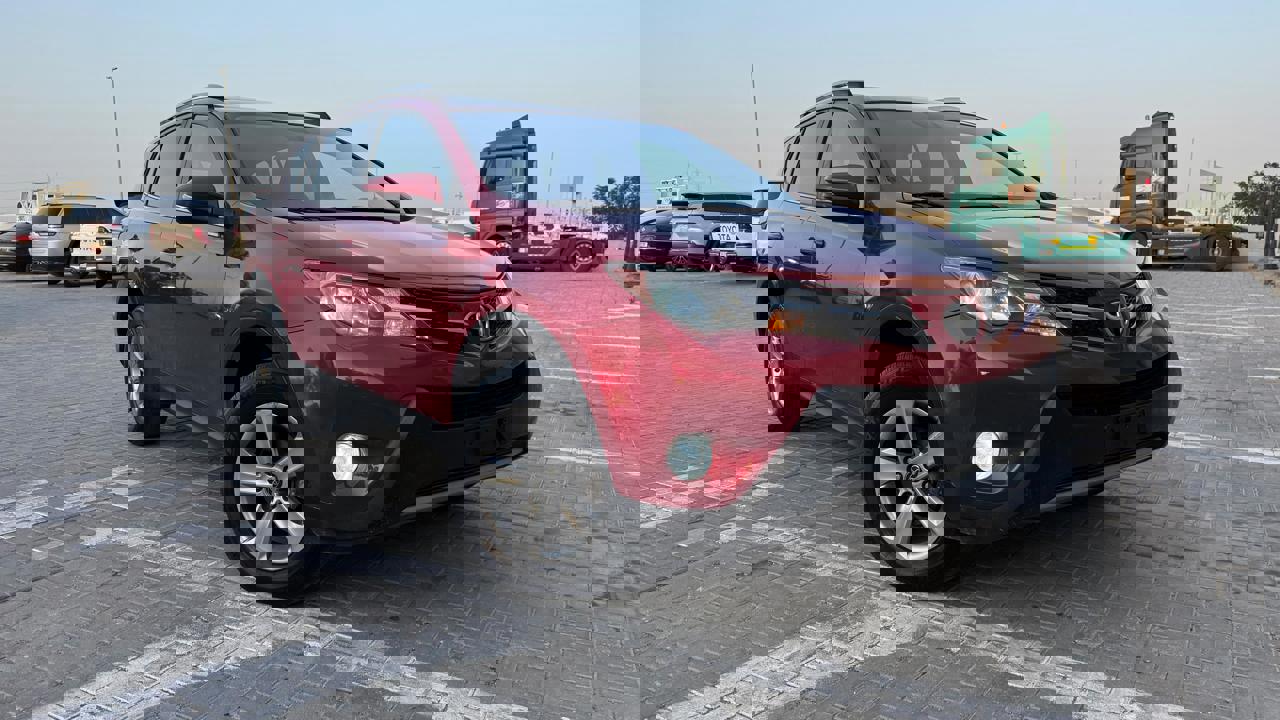 Toyota Rav4 2015 XLE color red inside black/red leather seats sunroof auto truck alloy rims fog lamp side indicators rear camera mutimeida stering 4x4 eco sports drive mode price 38000 dhs call or whatsapp +971551453408